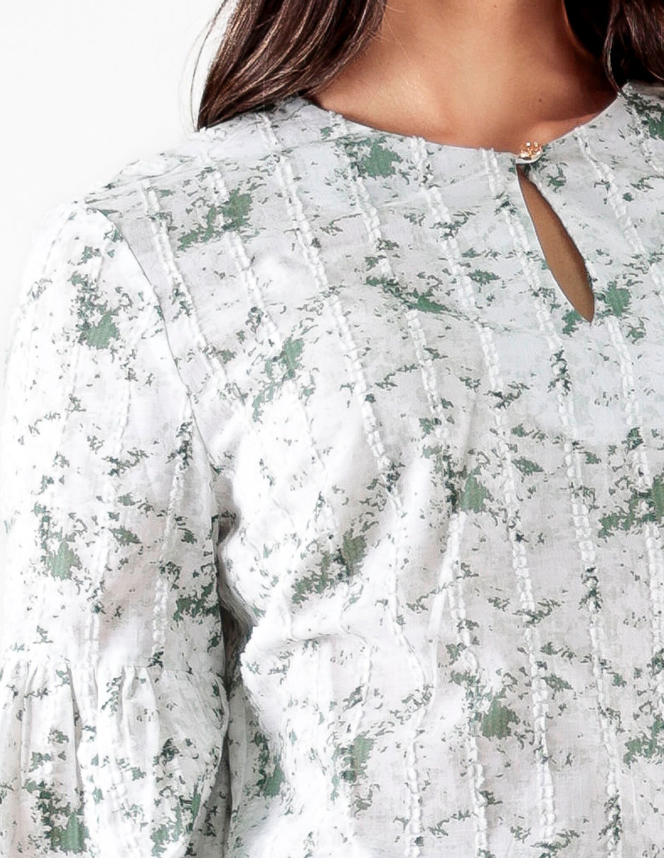 Blusa Cuello V Patrón Mosaico Corte Recto